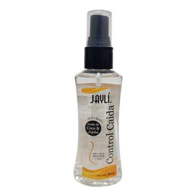 Tratamiento control caída en aceite de coco y aceite de jojoba. Especializado para controlar la caída excesiva de cabello, fortaleciendo desde el folículo. A diario el cabello sufre de múltiples daños, desde el simple contacto con el agua, humo, contaminación, polvo, hasta alteraciones químicas que sufren las moléculas que lo constituyen como por ejemplo teñirlo de color. Debido a esto es necesario protegerlo y cuidarlo utilizando los tratamientos JAYLI® que te ayudaran por una parte a protegerlo de todos estos factores dañinos, y por otra parte a reconstruir y regenerar las fibras de queratina que lo constituyen, y así obtener un cabello sano y hermoso.